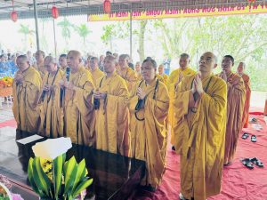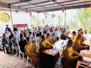 Đại biểu cùng Thượng tọa, Đại Đức Tăng Ni và bà con Phật tử về dự Lễ húy kỵ Tổ sư Thiên Không Lộ – hiệu Thiên Tộ.